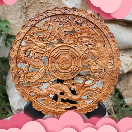 龙凤呈祥桃木龙凤八卦镜